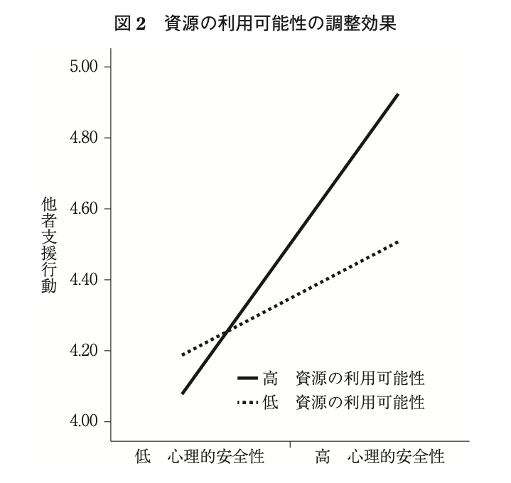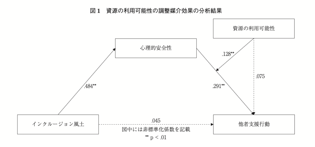 ・資源の利用可能性が心理的安全性の他者支援行動への影響のみならずインクルージョン風土の心理的安全性を介した代謝支援行動への影響を調整することが明らかになった