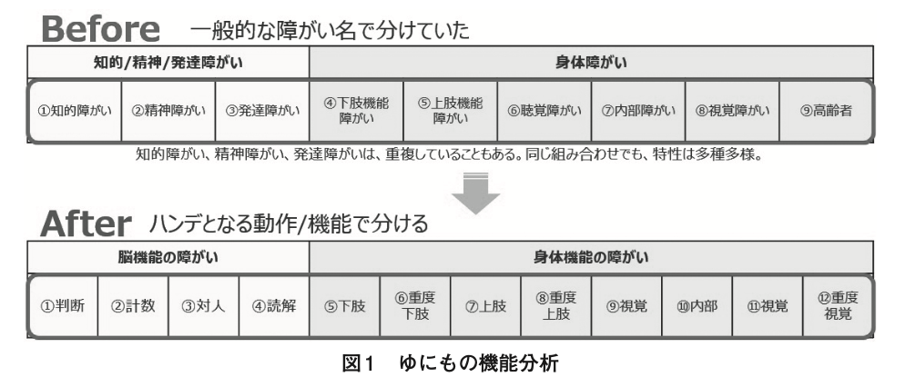 障害名での分類ではなく、動作や機能で分類するというのが画期的!